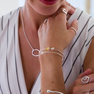 Bangles are similar to bracelets but are a more rigid structure and can sometimes be worn higher on the arm. The most commonly worn bangle is the torque, but there are others like a Russian bangle which have three smaller bangles to make the whole piece, that are also easily recognisable.