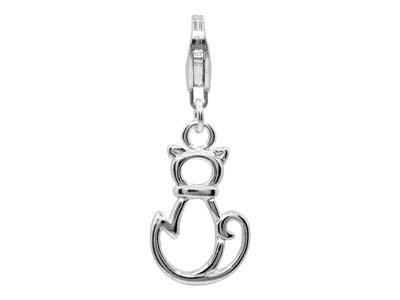 Sterling Silver Cat Design Charm With Carabiner Trigger Clasp